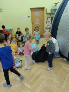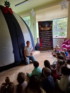 Ostatnio do przedszkola przyjechało Kino Sferyczne, dzieci z wielkim zainteresowaniem obejrzały film pt. „Kosmos”. Przed seansem prowadząca z pomocą miniatur planet wprowadziła dzieci w tematykę tej kosmicznej podróży. Dodatkowo dzieci oglądały też film o świętym Mikołaju.