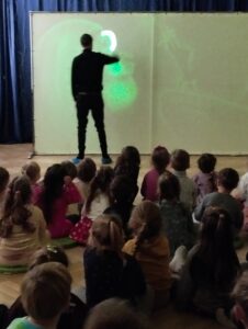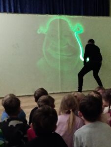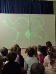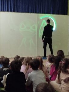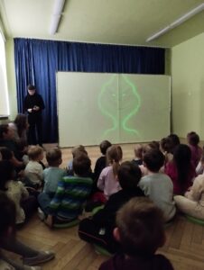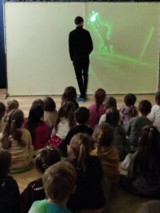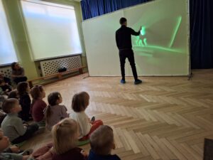 W ostatni poniedziałek rodzice Mikhaila przygotowali dla wszystkich przedszkolaków niecodzienny pokaz. Przy akompaniamencie muzyki z popularnych bajek i filmów tata chłopca malował laserem na specjalnym ekranie  występujące w nich postacie. Dzieciom sprawiło wiele radości odgadywanie jaki bohater właśnie powstaje, zachwytom nie było końca! Oto fotorelacja: