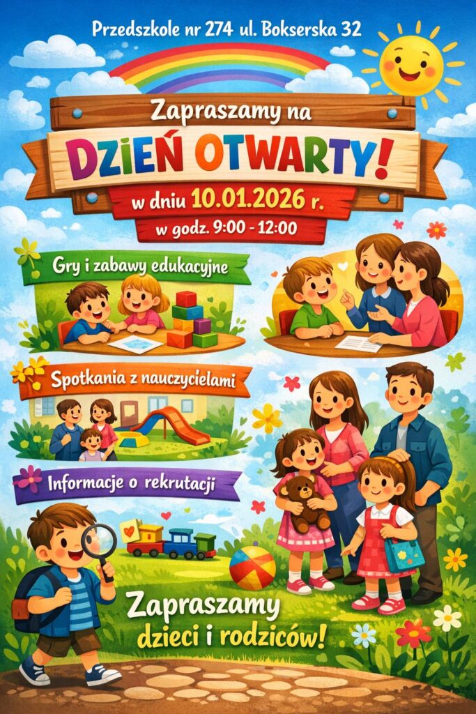 W sobotę 10 stycznia w naszym przedszkolu odbył się Dzień Otwarty, podczas którego gościliśmy dzieci wraz z rodzicami. Przygotowaliśmy wiele ciekawych zabaw i aktywności, które pozwoliły najmłodszym poznać przedszkolne sale, zabawki oraz atmosferę naszego miejsca. Zarówno dzieci, jak i rodzice chętnie brali udział w zajęciach i świetnie się bawili. Spotkanie przebiegło w radosnej i przyjaznej atmosferze.